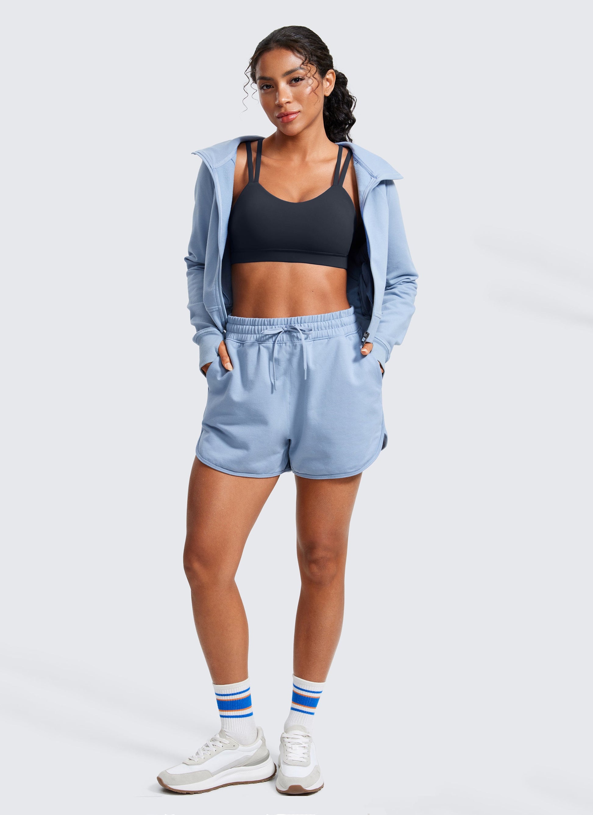 Butterluxe collection features super soft and stretchy high-quality fabric. The V-neck cut with M-shaped double spaghetti straps at the back makes you stand out during sports or casual.