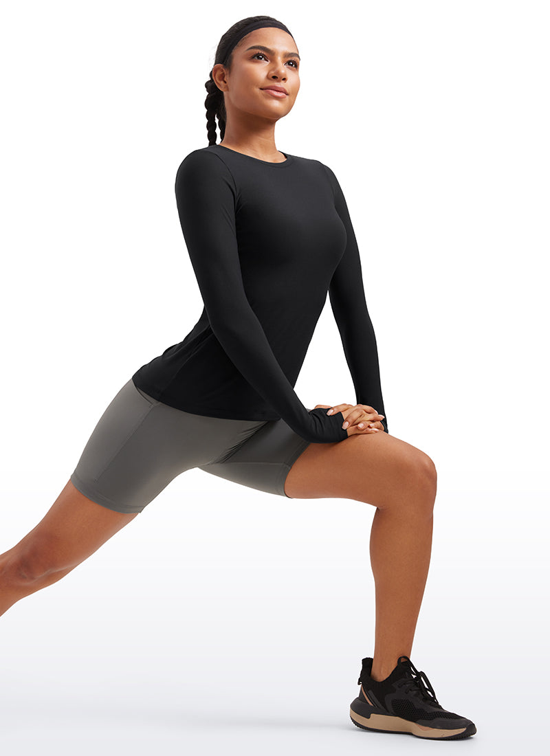 Cloudweight collection features a cloud-feeling which is super light and soft, as well as premium sweat-wicking skill. Workout shirt with thumb holes design for free movement. Fitted design slightly flatters your line and gently hugs your body for proper comfort. Great for workouts or everyday wear.
